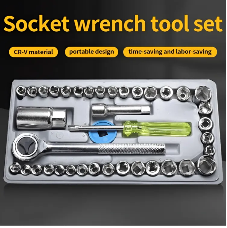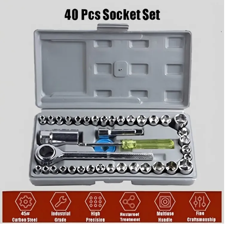40-piece comprehensive socket spanner set designed for versatile garage and workshop use. Features durable, clearly marked sockets in multiple sizes, ergonomic ratchet handles, and a quick-release mechanism for fast socket changes. Comes in a robust, compact carrying case for easy organization, storage, and portability.